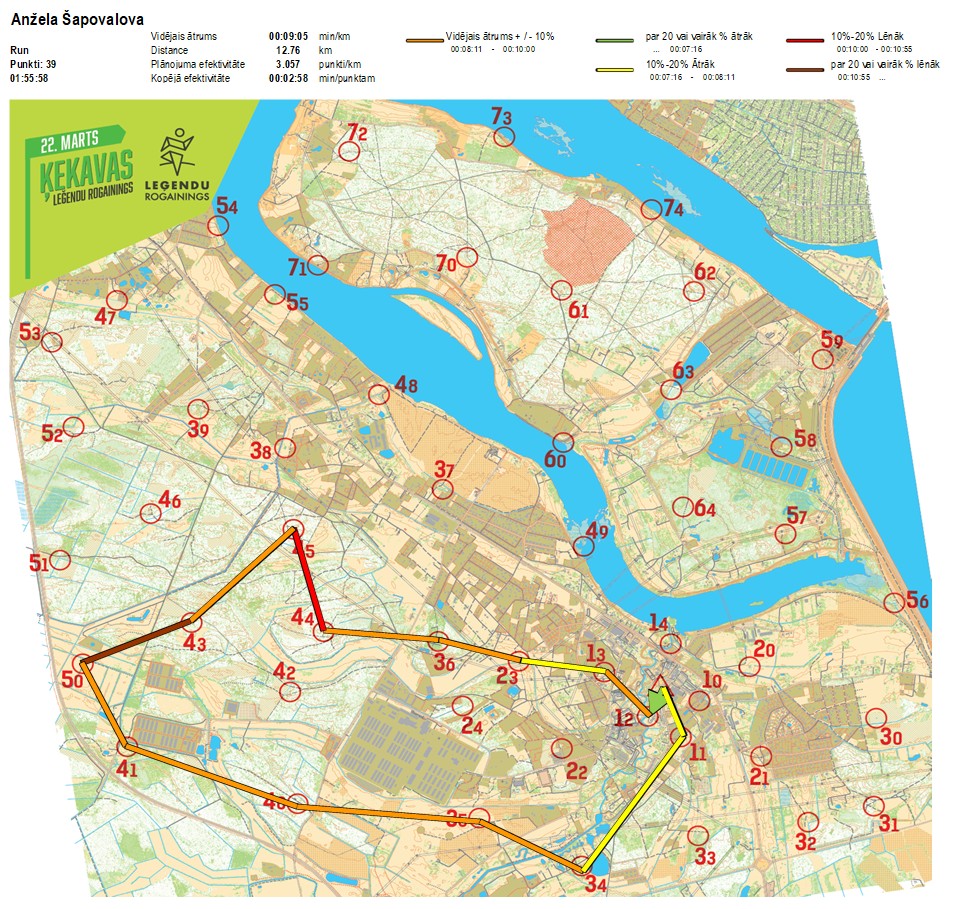 | Order No. | CP No. | Time | Points | Total points | Stage time | Total time | Stage distance | Total distance | min/km | min/pts | Split place |
