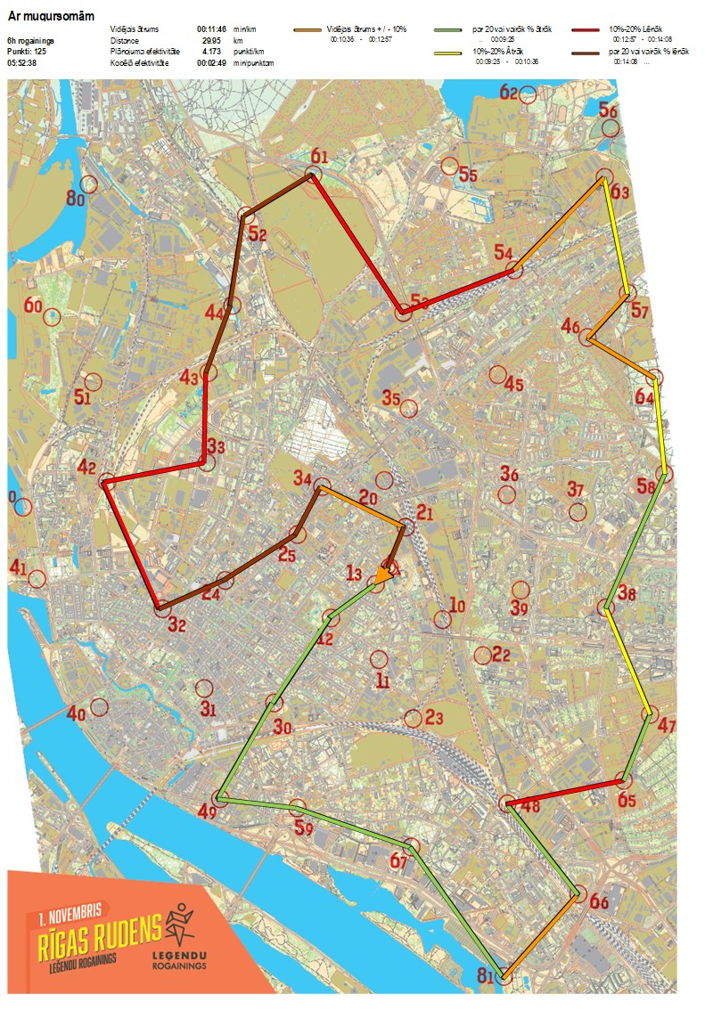 | Order No. | CP No. | Time | Points | Total points | Stage time | Total time | Stage distance | Total distance | min/km | min/pts | Split place |