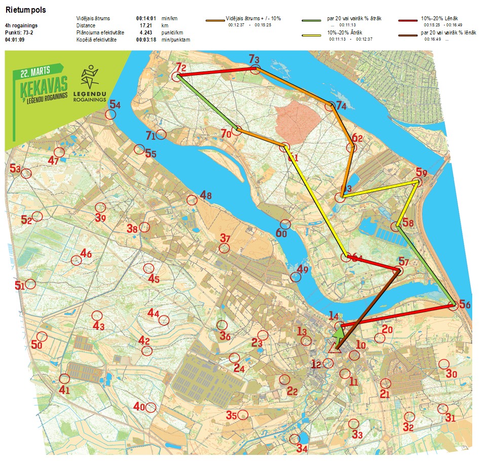 Secības nr KP nr Laiks Punkti Kopējie punkti Posma laiks Kopējais laiks Posma distance Kopējā distance min/km min/pts Vieta etapā