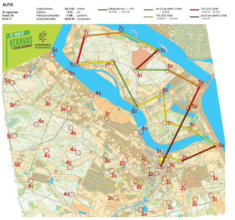 Secības nr KP nr Laiks Punkti Kopējie punkti Posma laiks Kopējais laiks Posma distance Kopējā distance min/km min/pts Vieta etapā