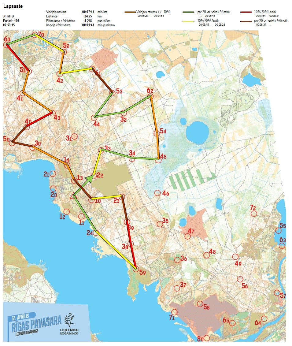 Secības nr KP nr Laiks Punkti Kopējie punkti Posma laiks Kopējais laiks Posma distance Kopējā distance min/km min/pts Vieta etapā