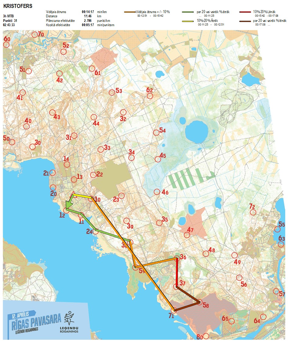 Secības nr KP nr Laiks Punkti Kopējie punkti Posma laiks Kopējais laiks Posma distance Kopējā distance min/km min/pts Vieta etapā