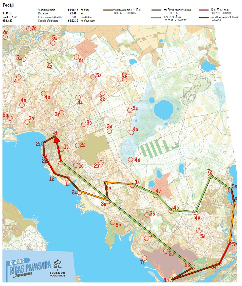 Secības nr KP nr Laiks Punkti Kopējie punkti Posma laiks Kopējais laiks Posma distance Kopējā distance min/km min/pts Vieta etapā