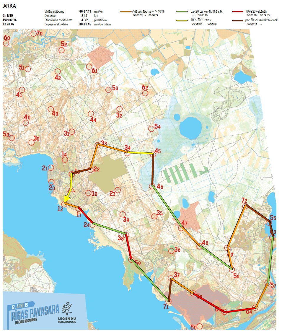 Secības nr KP nr Laiks Punkti Kopējie punkti Posma laiks Kopējais laiks Posma distance Kopējā distance min/km min/pts Vieta etapā