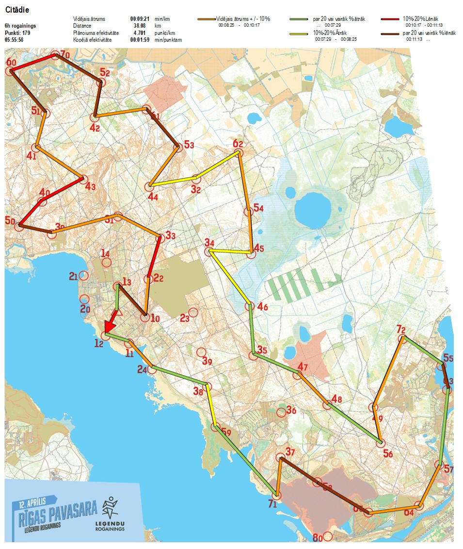 Secības nr KP nr Laiks Punkti Kopējie punkti Posma laiks Kopējais laiks Posma distance Kopējā distance min/km min/pts Vieta etapā