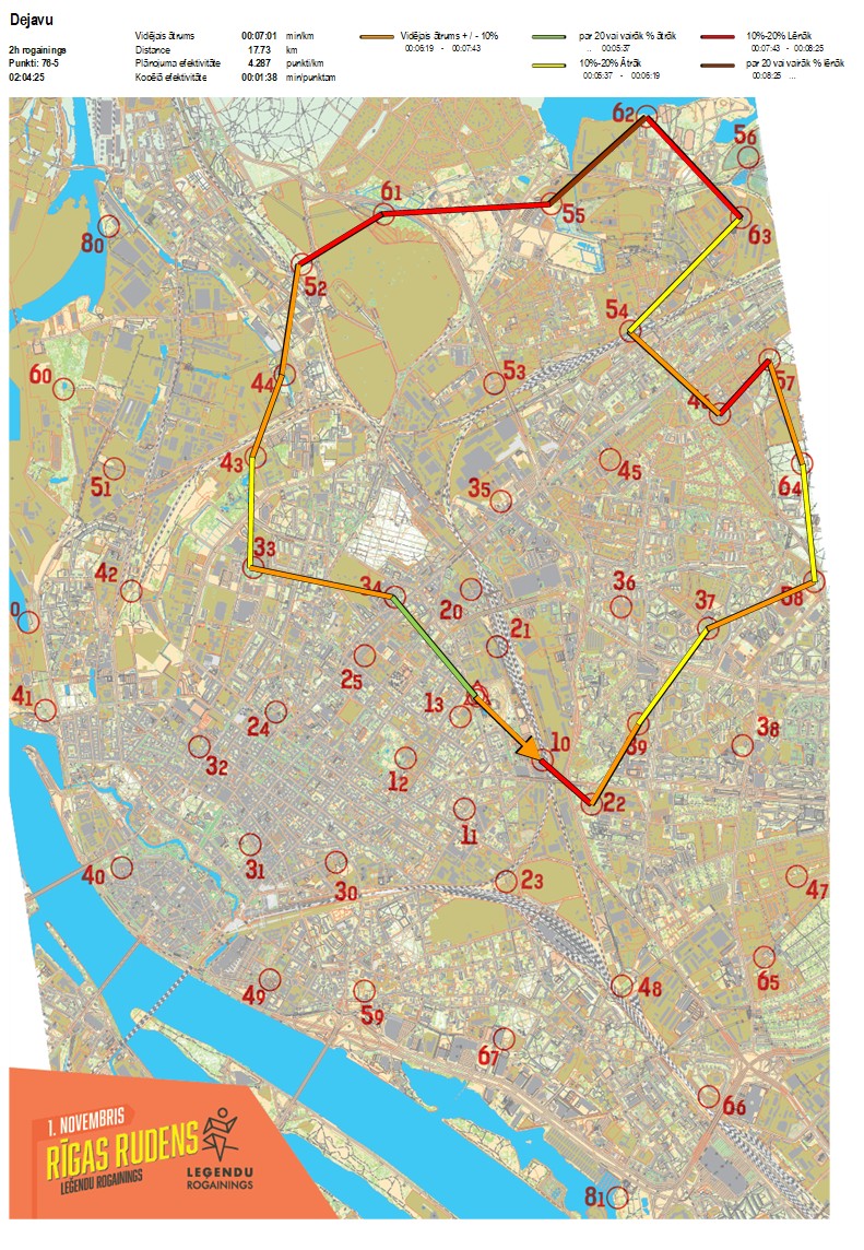 Secības nr KP nr Laiks Punkti Kopējie punkti Posma laiks Kopējais laiks Posma distance Kopējā distance min/km min/pts Vieta etapā